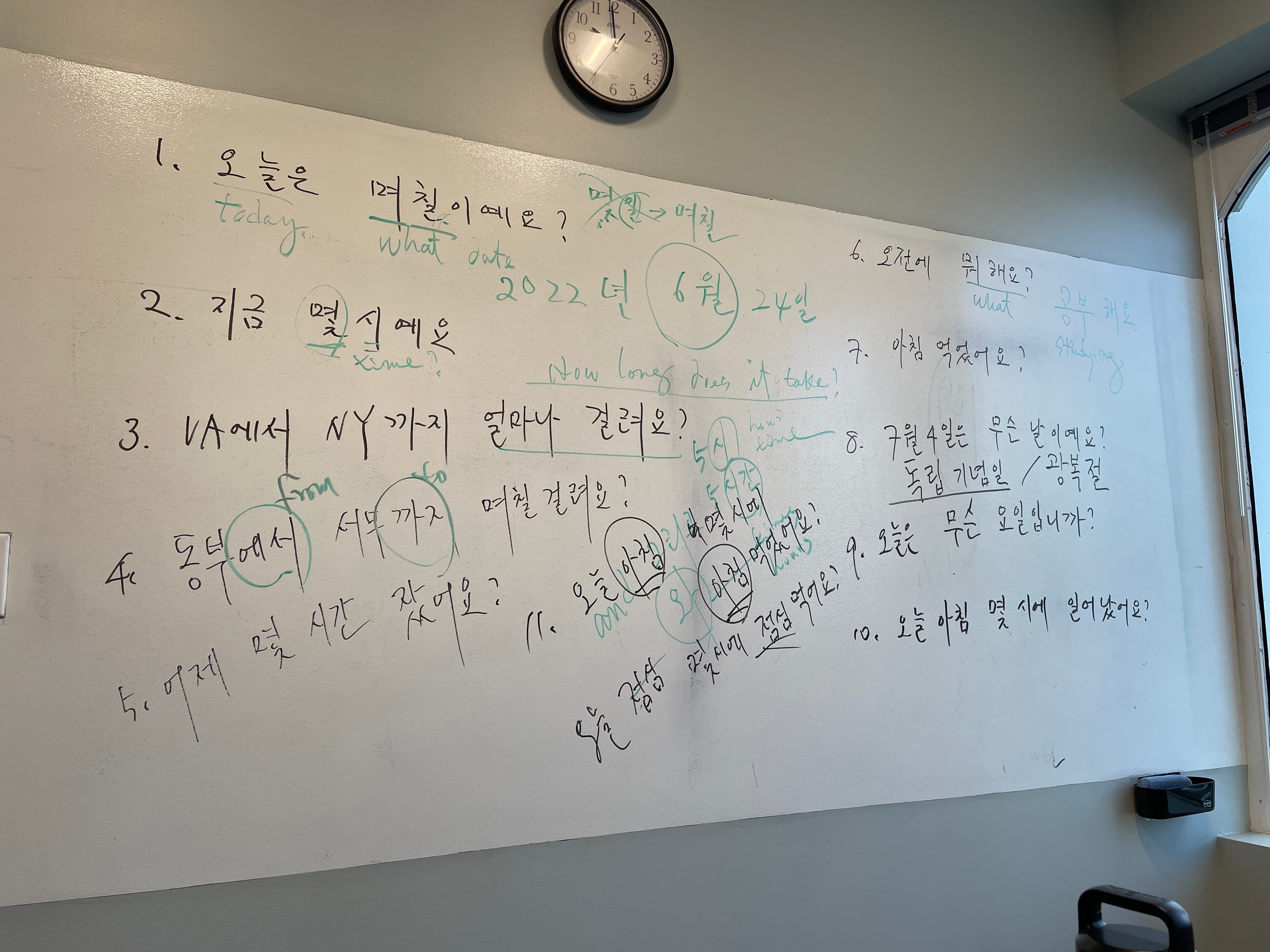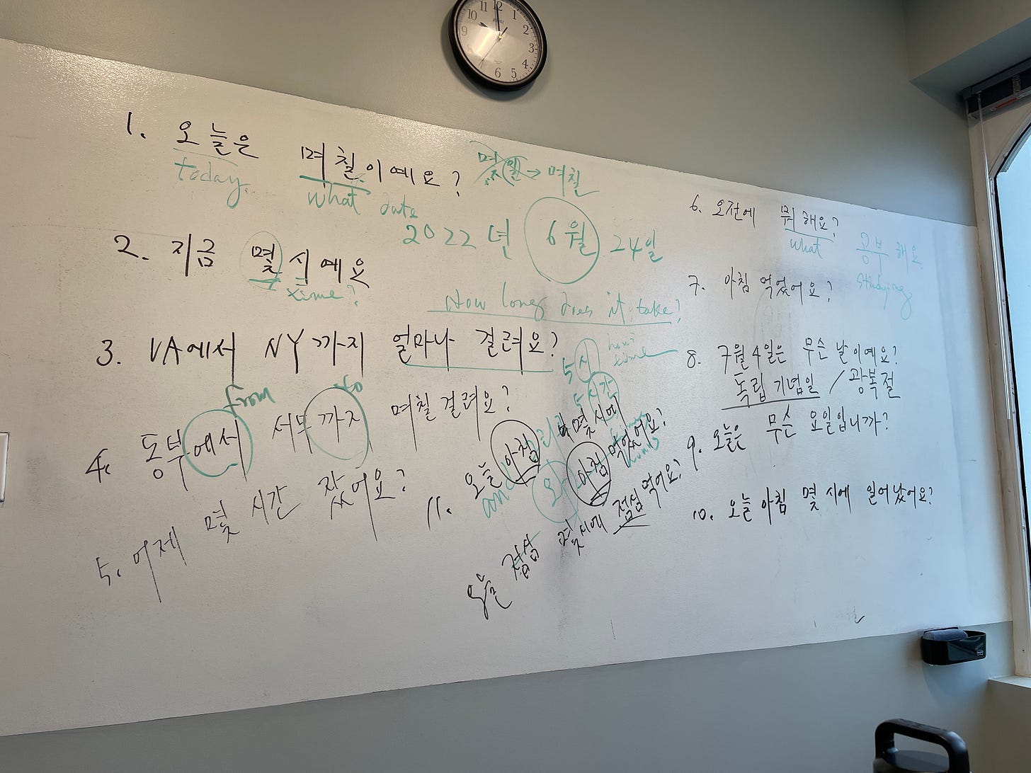 Language school began on 13 June at a contractor facility that caters to diplomats, State Department officials, and some military officers. They provide 1-on-1 instruction at my pace with a Korean-born teacher for 6.5 hours a day, and the rest is up to me. Two weeks in, I feel that I have a good system down for self-study before class and in the evenings to keep making the progress I want to make without burning out. Thankfully, learning Korean is the only thing I need to focus on or care about for the next year which is a true luxury.