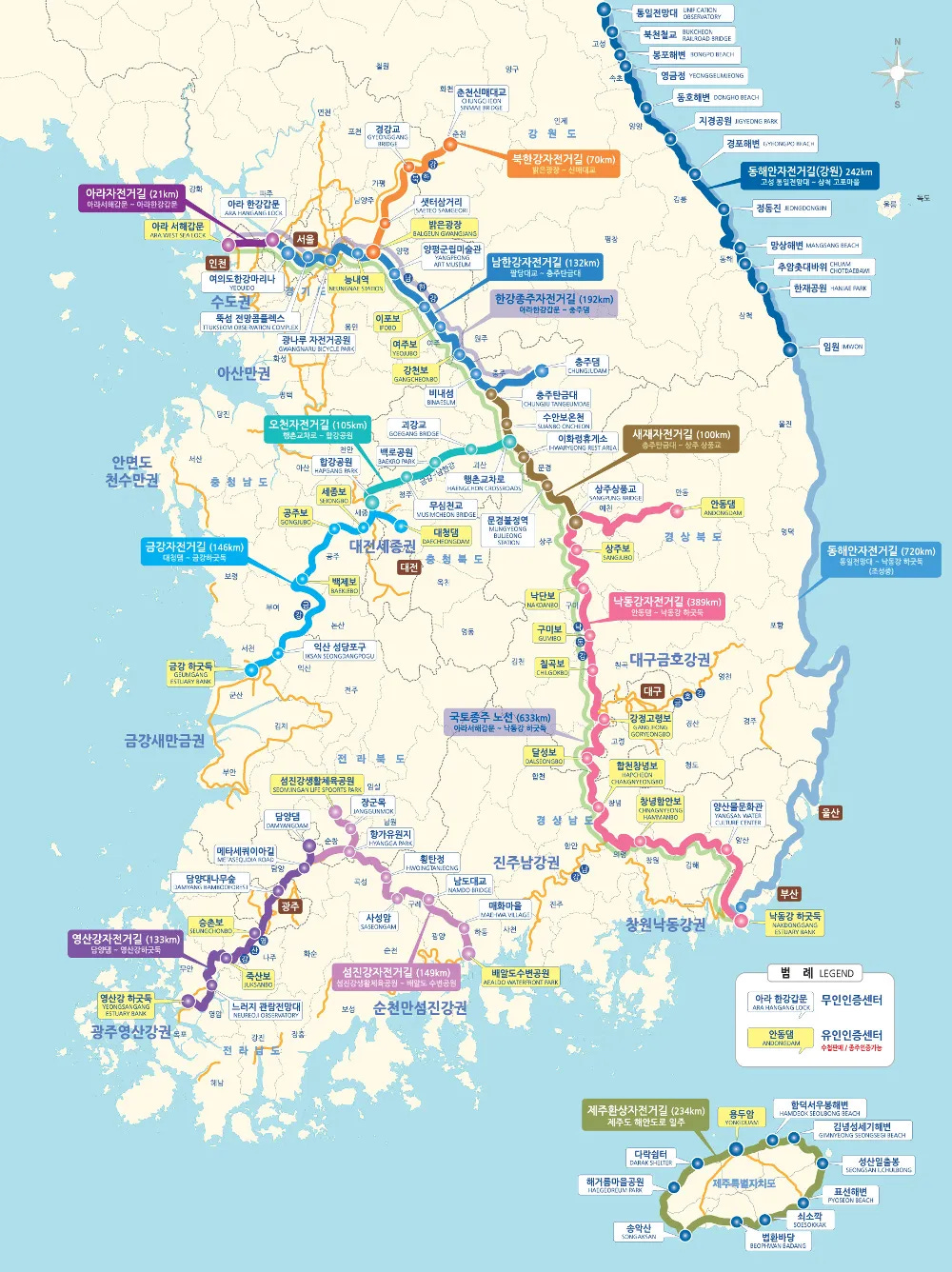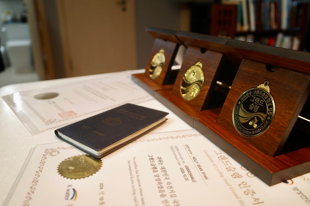 I love cycling and bike touring, so this seemed like a worthwhile goal to work towards while living here. After all, traveling by bike slows you down and takes you to places that you’d never visit by car or train, and I wanted to see as much of Korea as possible in my short time here. So in October of 2023, I purchased the bike passport and started with the trails in and around Seoul. Since then, whenever I had time off from classes, I’ve been traveling all around the country with my bikes to collect every stamp in Korea. This October, I finished the final trail to complete the “grand slam” and after waiting a few months for my passport stamps to be verified, I just now received my long-awaited mementos!