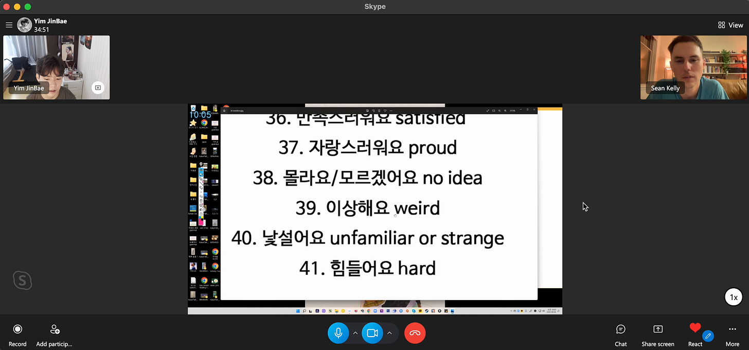 My Korean teacher during the day is great, but he’s also a 70 year old man, so I have to speak in the respectful form of the Korean language. Korean has several different politeness levels to use depending on your relationship to the listener, and speaking with a much older teacher is quite different from how I’ll speak to my Korean friends and colleagues. To address this, I’ve been seeking out native Korean speakers who are my age to practice with, and it’s been so much fun! I’m primarily using italki to find language exchange partners, but there are quite a few similar websites and apps out there to practice speaking with native speakers. So far, I’ve been meeting with Yim JinBae once a week for an hour to talk and learn in a relaxed, friendly environment. As I get better with Korean, I plan on expanding to more language partners to get more speaking practice, but one session a week seems sufficient for now at my skill level.